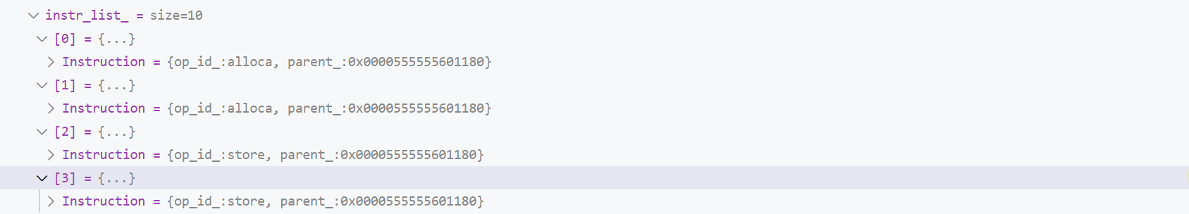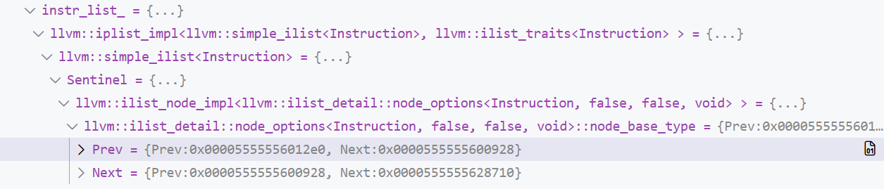 原有的 llvm::ilist 无法被 lldb 正确识别。导致调试时无法看到一个函数有哪些基本块,一个基本块有哪些指令;