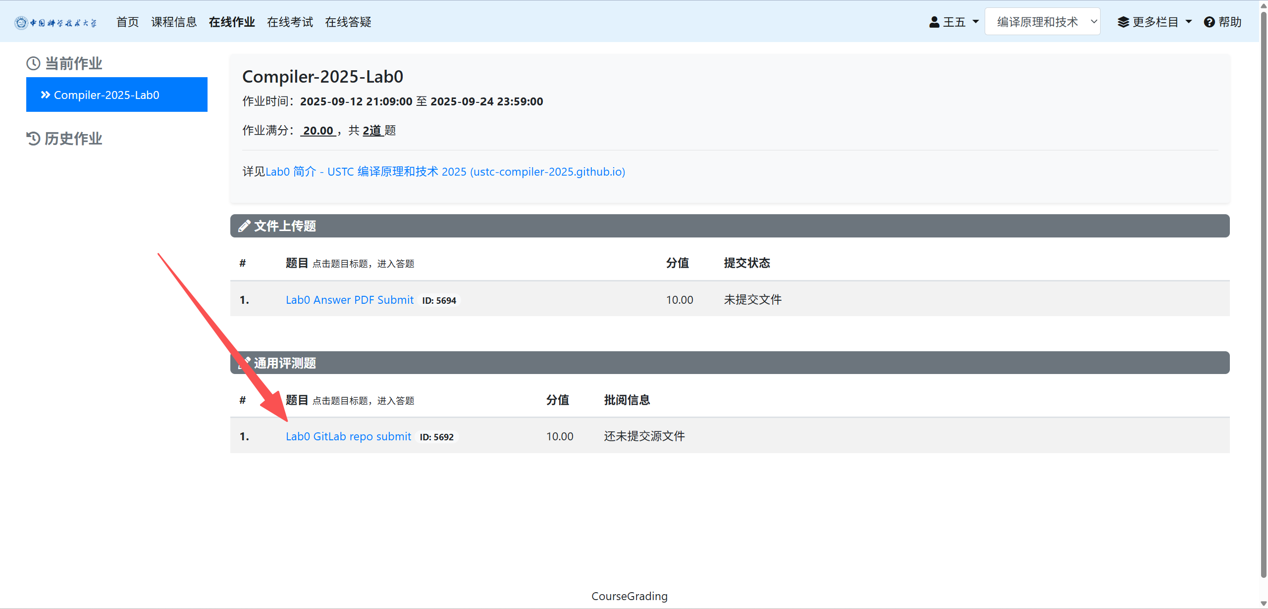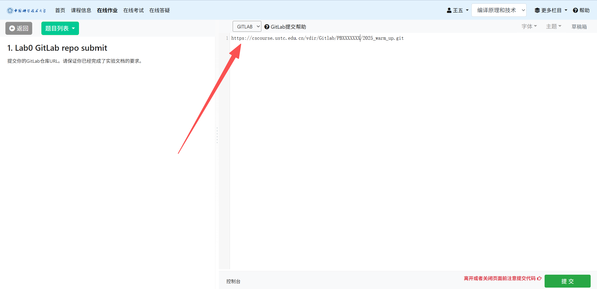 在希冀平台上传提交你的 answer.pdf 文件,并提交 GitLab 仓库链接。