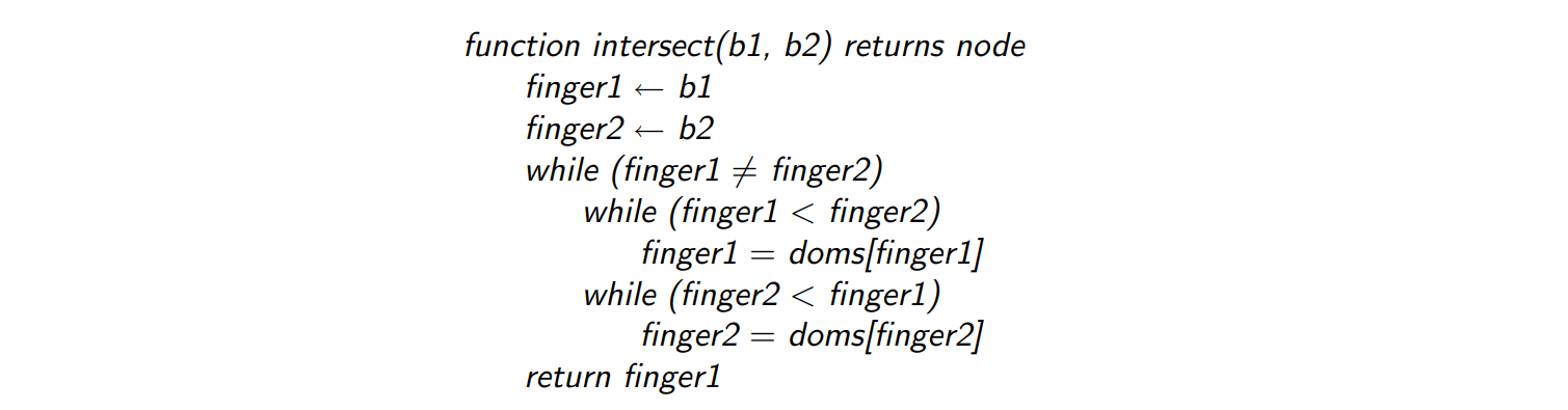 这个函数基于支配树的如下特点:如果给节点按逆后序排列,则支配树上的祖先一定在孩子前面。