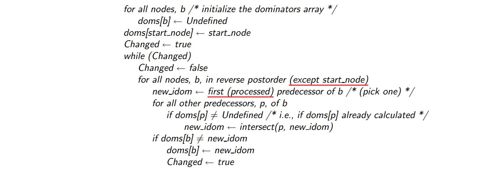 在课上已经对支配树进行了一定介绍 (相关课件)。 我们实际上使用的并非课件上的方法, 而是A Simple, Fast Dominance Algorithm。